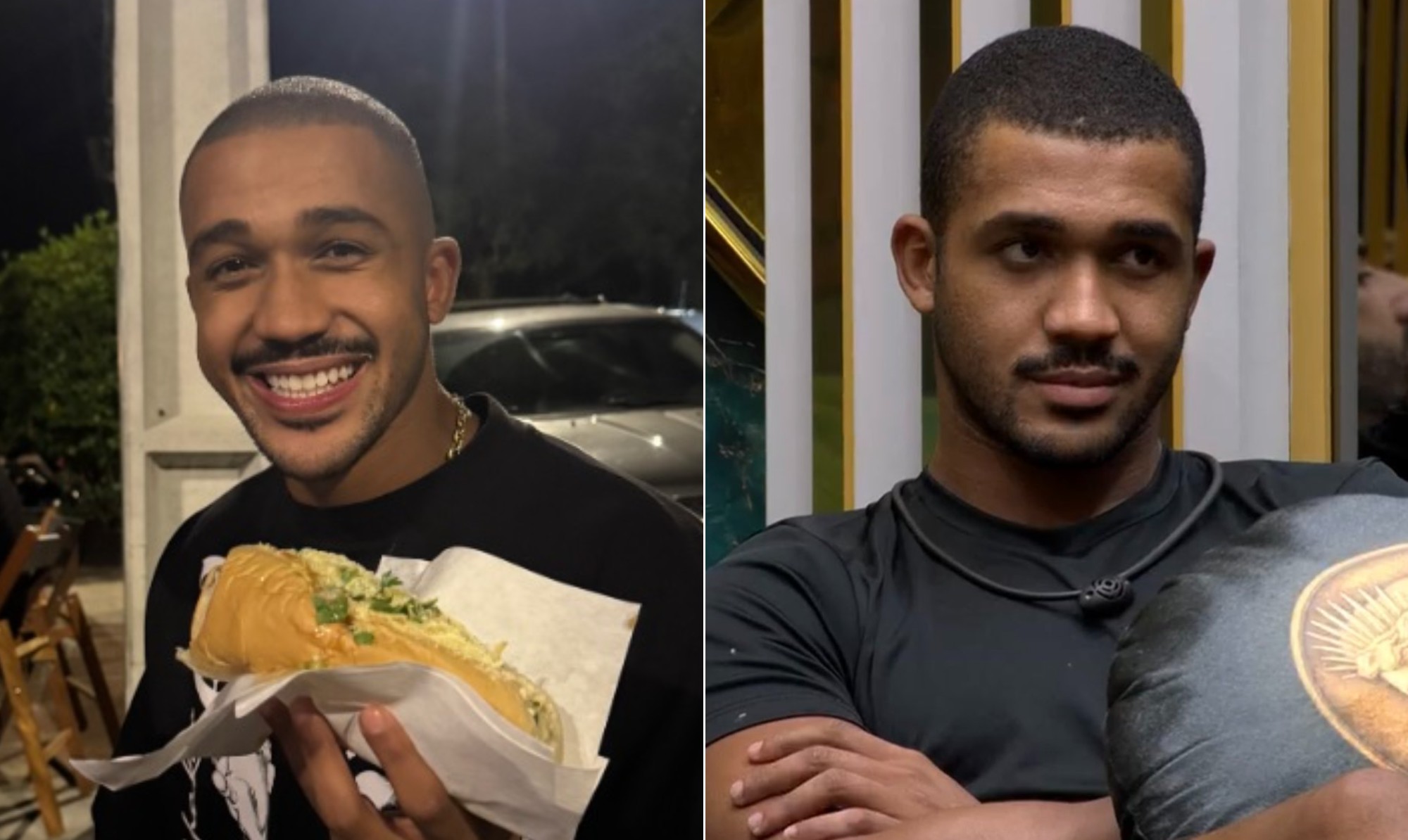O cachorro quente dele chegou a cair no chão, mas o ex-brother pegou o alimento de volta e comeu. "Consegui deixar cair o cachorro no chão... Sou muito atrapalhado mesmo (risos). Mas depois do quarto branco, xepa, a gente come mesmo assim", disse ele.