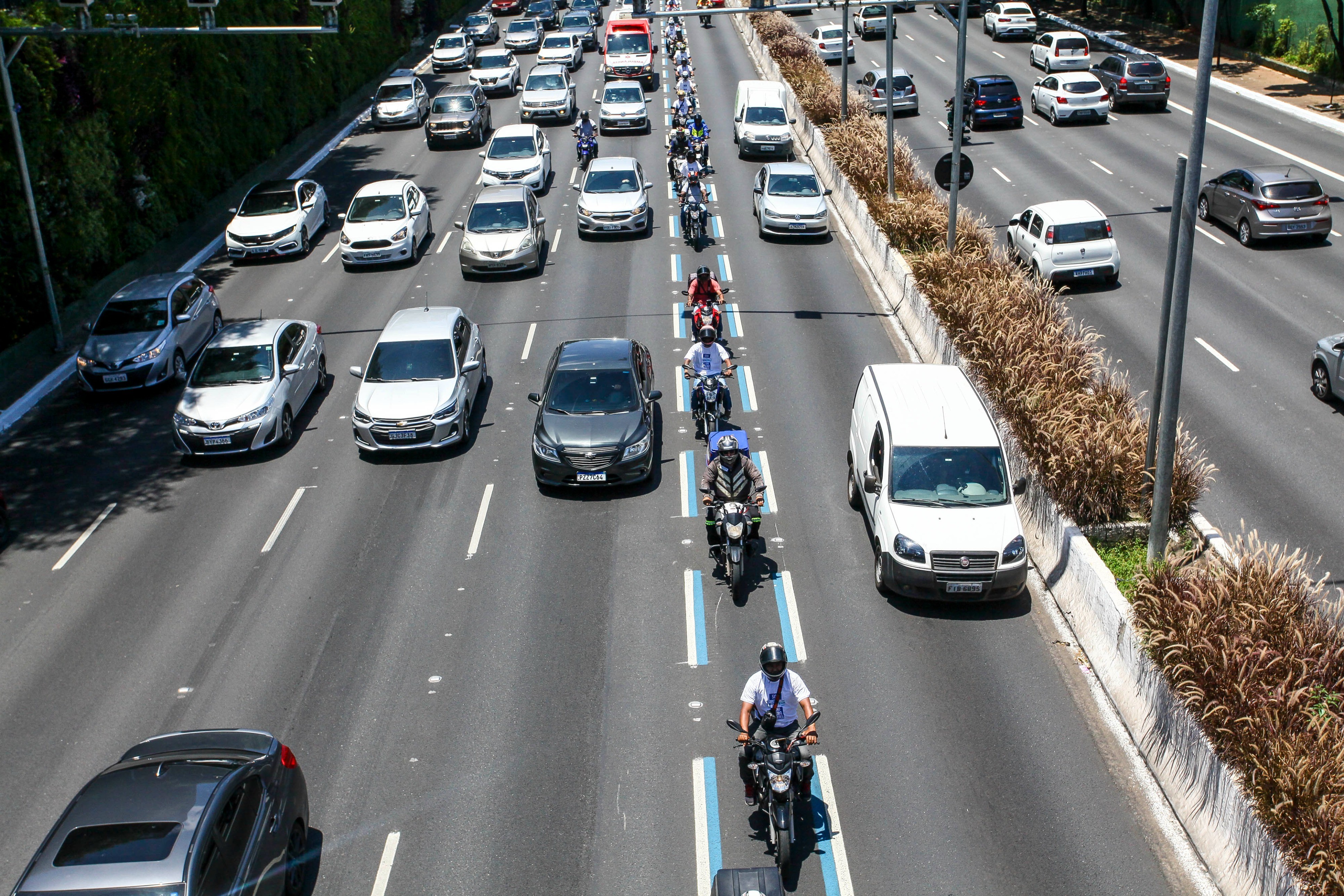 A prefeitura, no entanto, diz que a velocidade média das motocicletas em vias com a segmentação é de 49,7 km/h, “dentro do limite regulamentado para esses locais”.