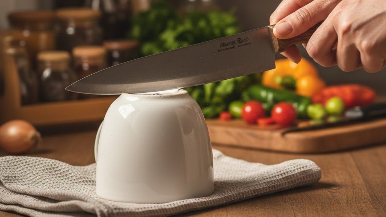 Facas cegas nunca mais: use o fundo de uma caneca de cerâmica para afiar suas facas de cozinha com a mesma precisão de uma pedra profissional