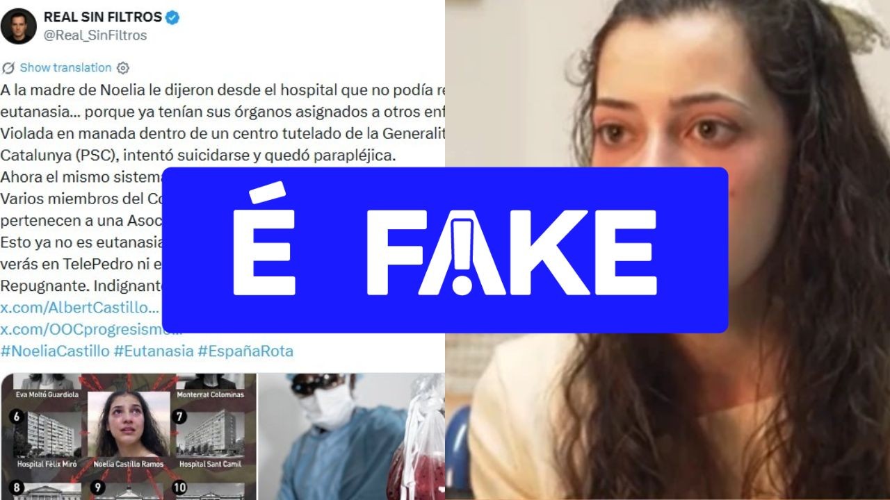 Uma das publicações que circulam nas redes sociais afirma que Noelia Castillo teria sido pressionada a antecipar a eutanásia porque “seus órgãos já estavam designados a outros enfermos”, além de alegar que ela teria sofrido abuso em um centro tutelado e que o Estado espanhol estaria tentando “matá-la para reparti-la”.
