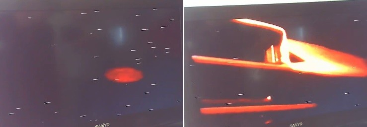 Nas imagens, inéditas até agora, um disco avermelhado é visto no céu. A luz que ele emite é tão forte que ilumina o painel do carro onde viajam os amigos de Los Angeles (Califórnia).