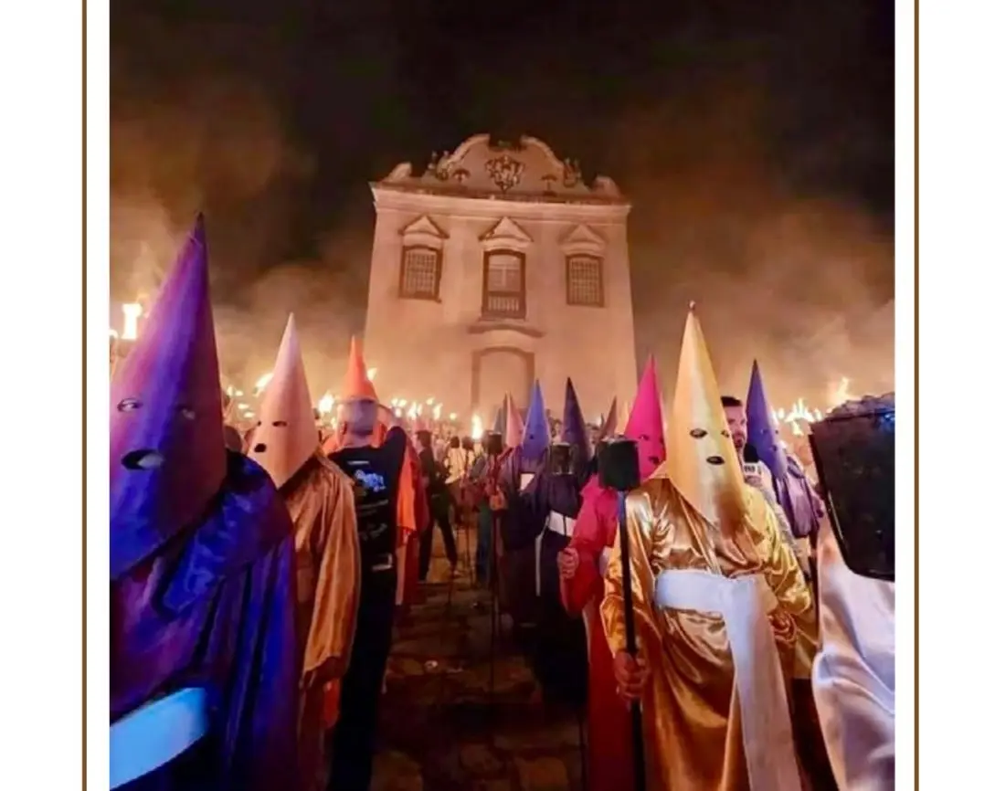Farricoco /ô/ — substantivo masculino — é aquele que participa das procissões de penitência, vestindo hábito escuro, com capuz, e tocando trombeta