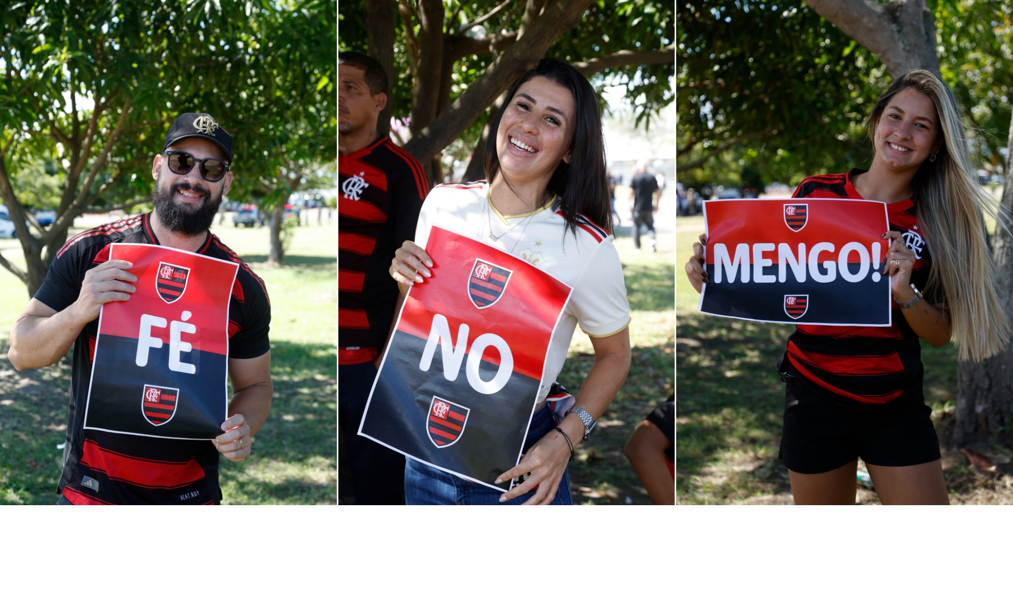 O EXTRA esteve presente no Aerofla, evento de apoio durante o embarque no Aeroporto do Galeão, na quarta-feira passada, e registrou torcedores animados segurando as placas. Rubro-negros dos mais jovens aos mais experientes, de todos os cantos do estado do Rio de Janeiro, registraram a fé de que o Flamengo pode sair hoje de Lima, no Peru, com o tetracampeonato da Libertadores.