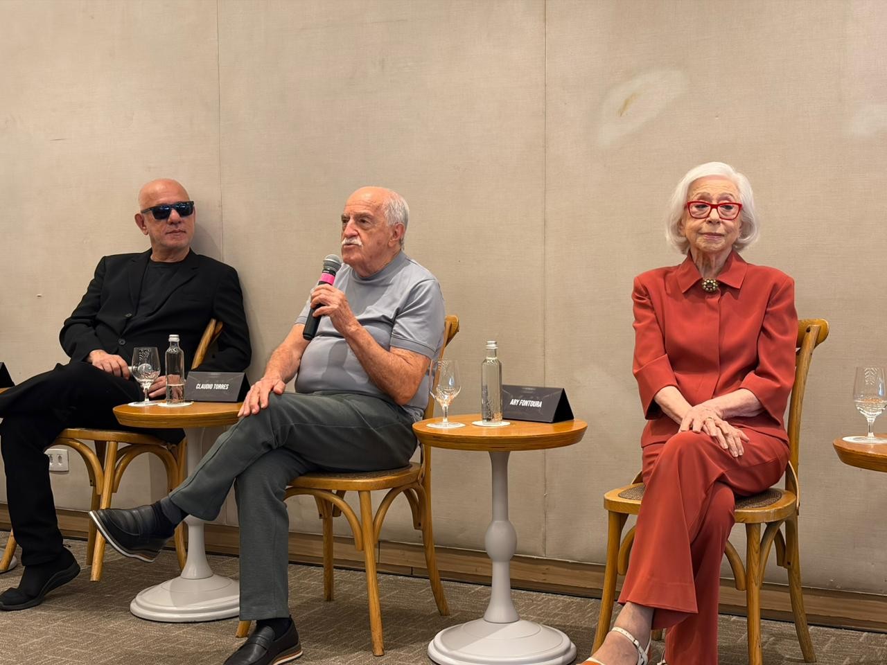 A equipe da comédia “Velhos bandidos” se reuniu na manhã desta quinta-feira (16) em um hotel da Zona Sul do Rio para uma coletiva de imprensa. O diretor Claudio Torres, os atores Fernanda Montenegro, Ary Fontoura, Lázaro Ramos, Bruna Marquezine e Vladimir Brichta, e a produtora Juliana Capelini falaram com os jornalistas.