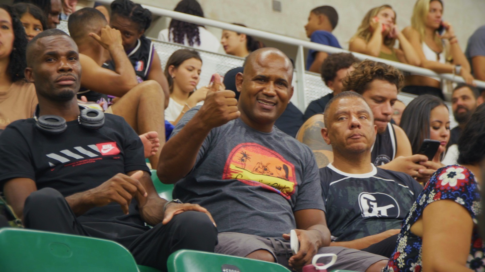 Sempre com um sorriso no rosto, Tererê foi cercado por fãs, atendeu pedidos de fotos, conversou com o público e acompanhou de perto a atuação de seus alunos nos tatames. A presença da lenda deu um brilho especial ao evento.