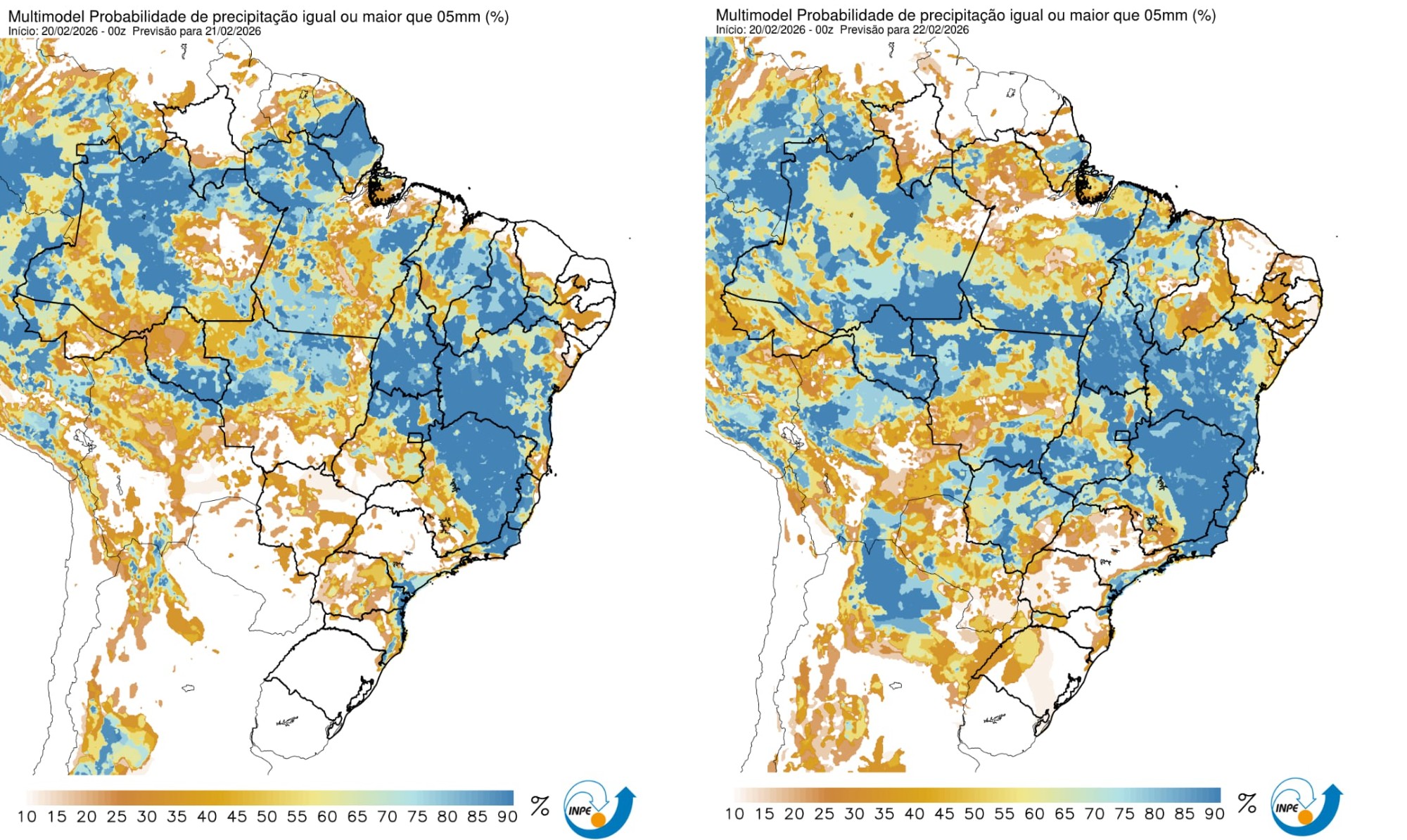O Nordeste também terá um fim de semana marcado por chuvas mais fortes. O destaque fica com a Bahia e com o Piauí, estados que têm aviso de acumulado até o fim de sábado classificado como grande perigo pelo Inmet. Essa área pode ter chuva superior a 60 mm/h ou acima de 100 mm/dia.