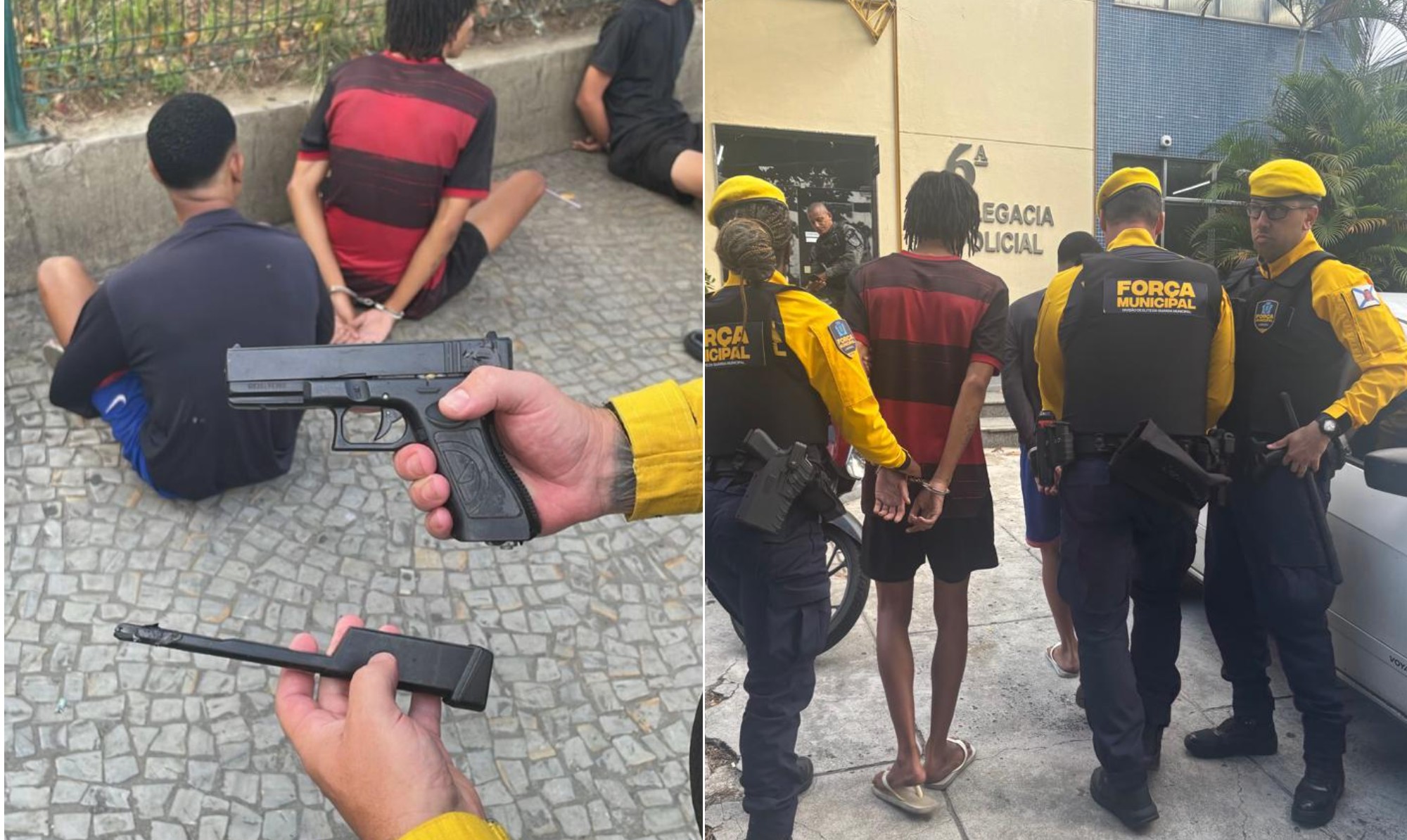 Na revista, os agentes encontraram uma réplica de arma de fogo com um dos suspeitos. O grupo foi detido e encaminhado à 6ª DP (Cidade Nova), onde o caso foi registrado.