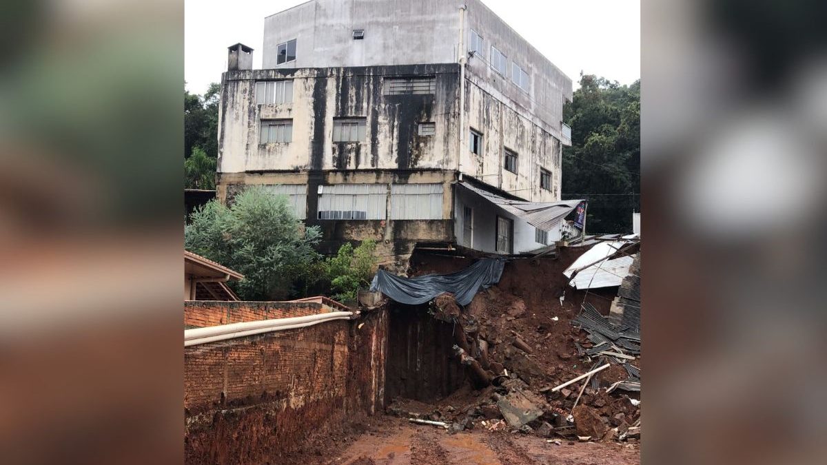 O post FOTOS: Deslizamento coloca prédio ‘em balanço’ e mais cinco imóveis em risco em SC apareceu primeiro em ND Mais