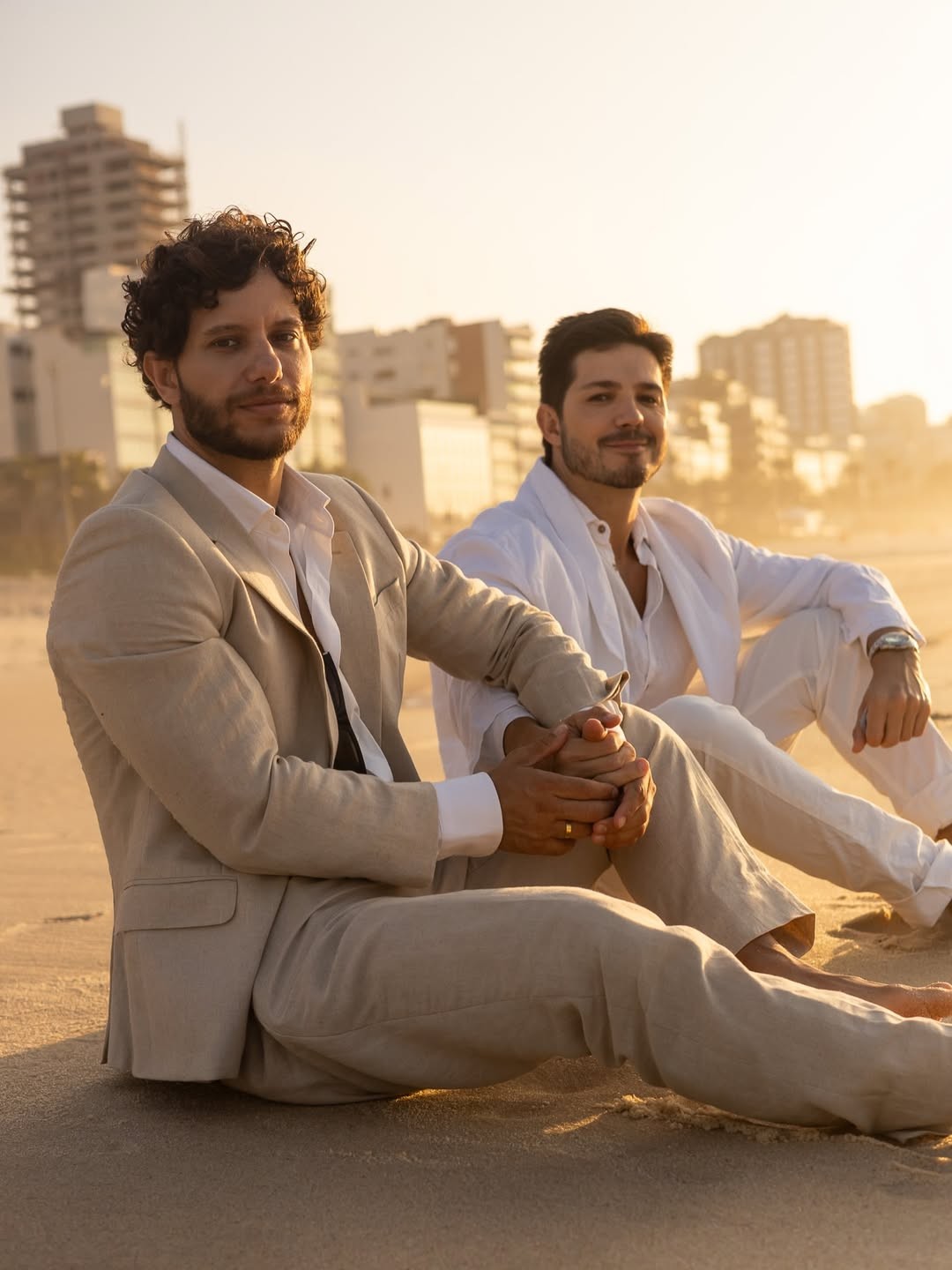 Falta pouco! Intérprete de Gael da novela "Mania de Você", Igor Cosso fez um ensaio romântico em uma praia do Rio com o noivo para anunciar que faltam três meses para o casamento deles.