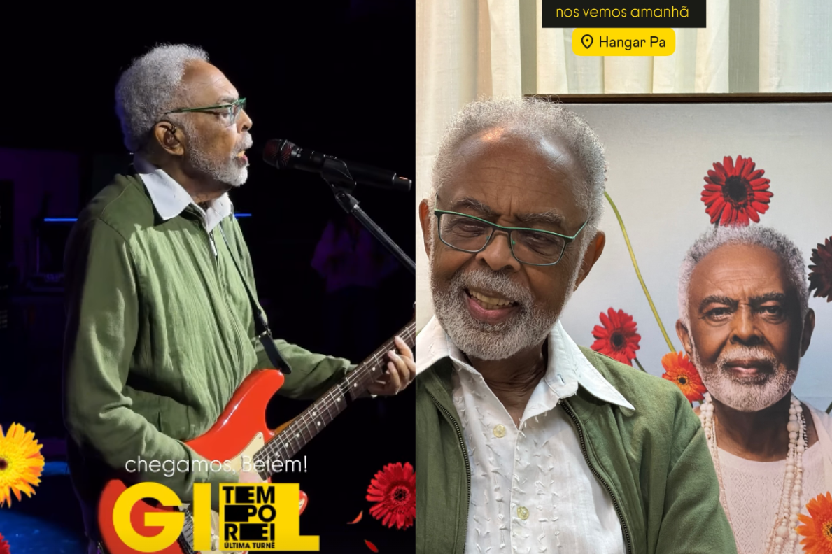 As imagens foram publicadas nos stories do Instagram pela equipe do cantor. Em uma das postagens, Gil escreveu: “Chegamos, Belém! Nos vemos amanhã”. A apresentação ocorre neste sábado (21), às 21h, e integra a turnê “Tempo Rei”, considerada a despedida dos palcos de um dos principais nomes da música brasileira.