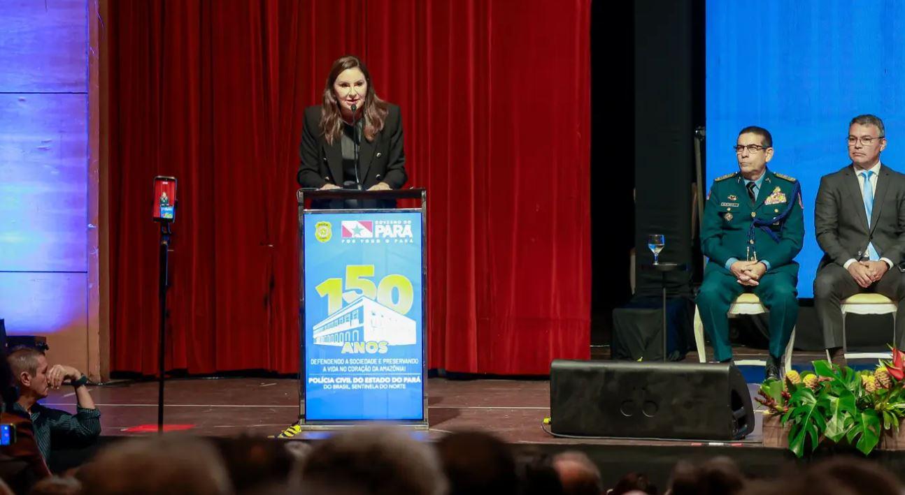 Hana destacou a importância da Polícia Civil para a segurança do Pará e ressaltou os 150 anos de dedicação à sociedade paraense. “A Polícia Civil do Pará se consolida, cada vez mais, como uma instituição importante para a segurança pública do Estado. Estar nesta cerimônia hoje e fazer parte desse momento, enquanto governadora do Pará, me enche de orgulho. Por isso, aproveito a oportunidade para anunciar a maior promoção da história da Polícia Civil. Serão 1.600 policiais civis que serão agraciados com a progressão funcional. Um momento de extrema valorização profissional”, disse