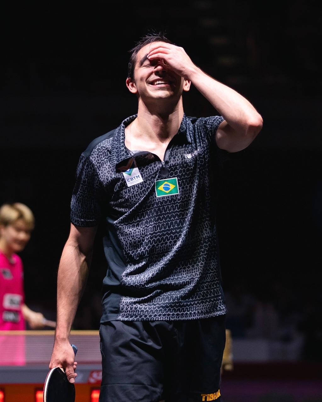 O chinês venceu por 4 sets a 1 com parciais de 11-7, 11-3, 11-7, 6-11 e 12-10. O brasileiro deixou a disputa pelo 2º título consecutivo da categoria, mas já havia garantido a medalha de bronze da competição ao derrotar o francês Alexis Lebrun no último sábado, 4.