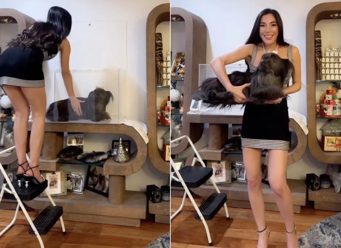 Influencer viraliza e causa indignação após manter a sua cadela morta em caixa de vidro na sala de casa
