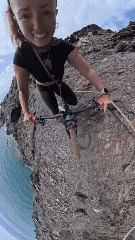 Influenciadora grava própria queda enquanto andava de bicicleta à beira de um penhasco; veja vídeo