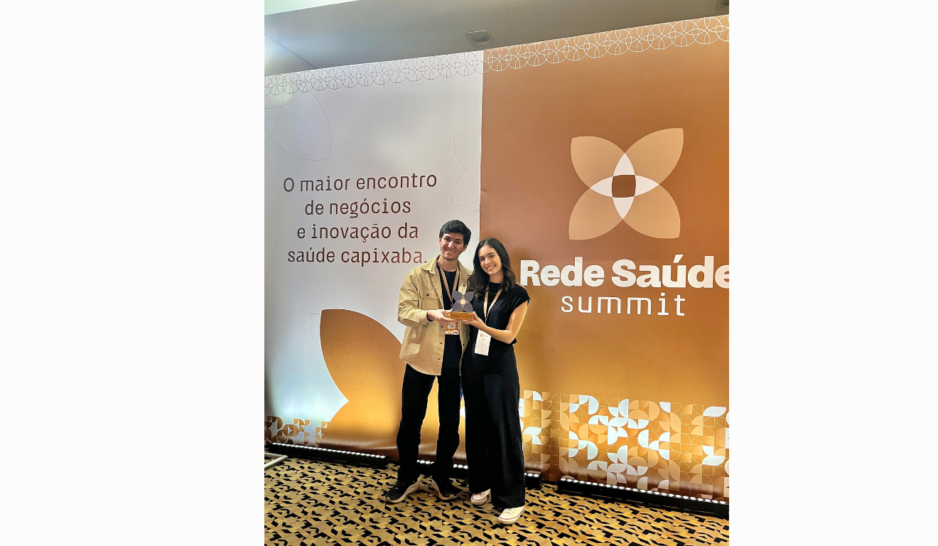 Os irmãos Rodrigo Leite Colli Pedroso e Lorena Leite Colli Pedroso quando receberam o o Troféu Rede Saúde de Inovação, no último Rede Saúde Summit. Foto: Divulgação Após vencer prêmio de inovação em saúde em 2025, projeto SinaLib participa de seleção em programa nacional que transforma ideias em negócios tecnológicos