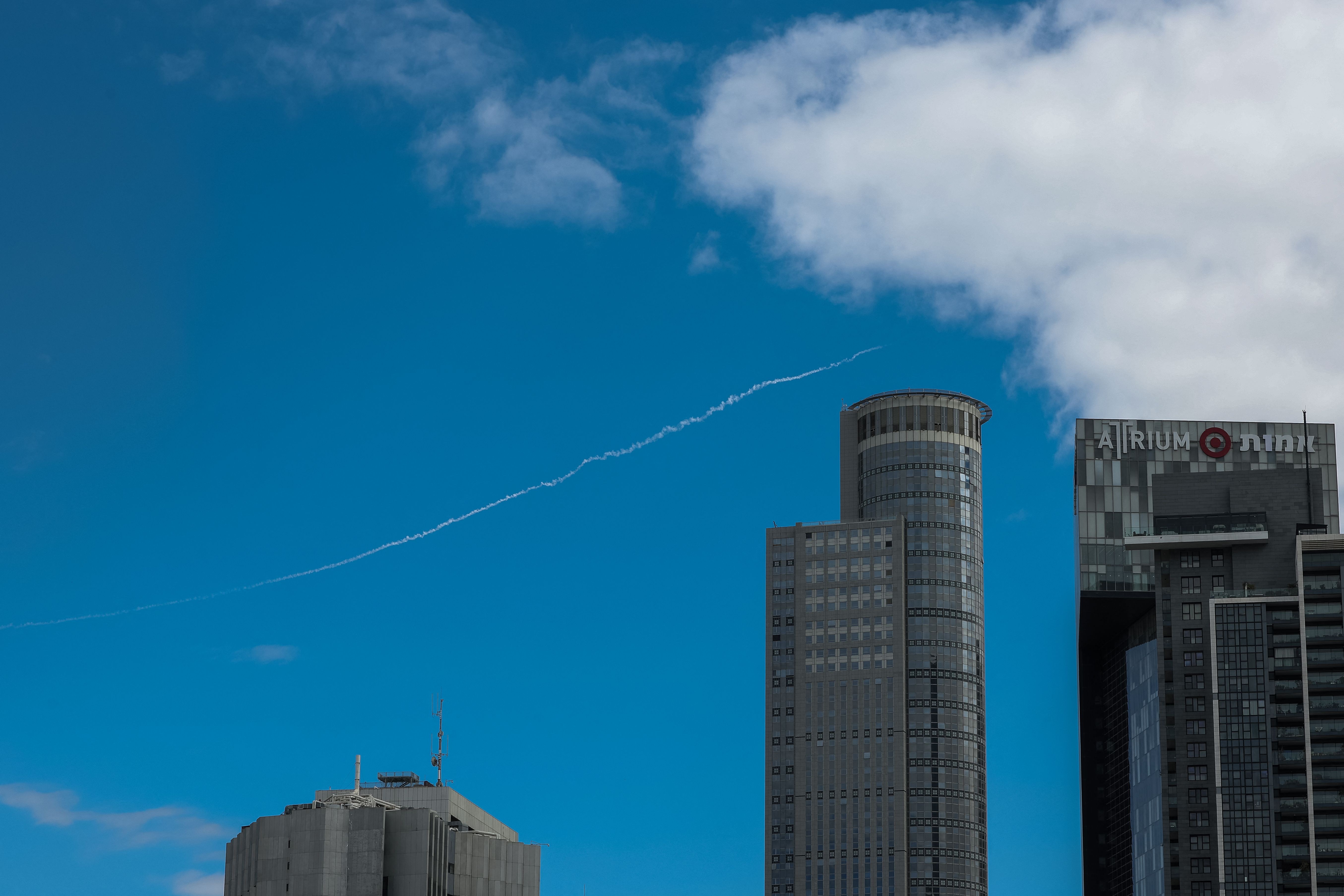Em um evento separado, um terceiro homem, identificado como tendo por volta dos 30 anos, sofreu ferimentos graves ao também ser atingido por estilhaços abatidos em uma localização na região central de Israel. Jornalistas da AFP em Israel indicaram em certa altura desta segunda-feira que ao menos 12 explosões foram ouvidas na região de Tel Aviv.