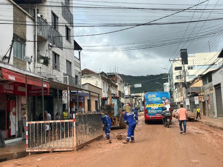 Em algumas ruas, a equipe de limpeza urbana já tenta fazer a limpeza de barro e lama acumulada, em alguns pontos com o apoio de retroescavadeira e caminhão para a remoção do material proveniente de desmoronamentos. Na manhã desta quarta-feira (25), em uma das vias, no momento são mais de 30 servidores trabalhando na limpeza, por exemplo.