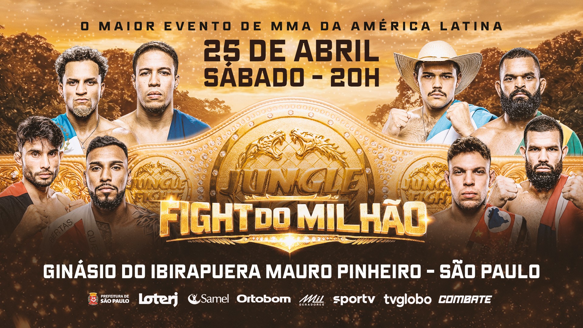 O Jungle Fight anunciou oficialmente os nomes que vão disputar o torneio masculino do Fight do Milhão 2026, que começa no dia 25 de abril, no Ginásio do Ibirapuera, em São Paulo. A competição reúne atletas da divisão até 77 kg e terá transmissão ao vivo pela Globo, Sportv e Combate. O GP paga R$ 1 milhão aos campeões, dividido igualmente no masculino e no feminino.