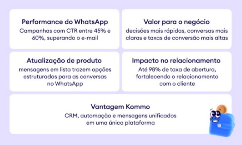 Kommo amplia as vantagens do WhatsApp com Mensagens de Lista, impulsionando conversão e relacionamento com clientes