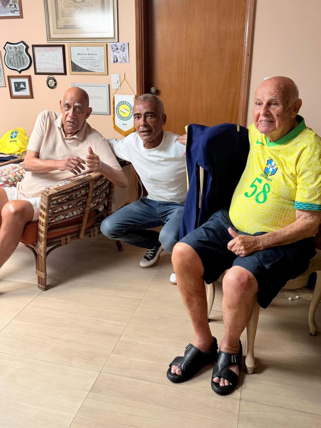 Romário em encontro com José Macia, o Canhão da Vila, e Mengálvio Figueiró