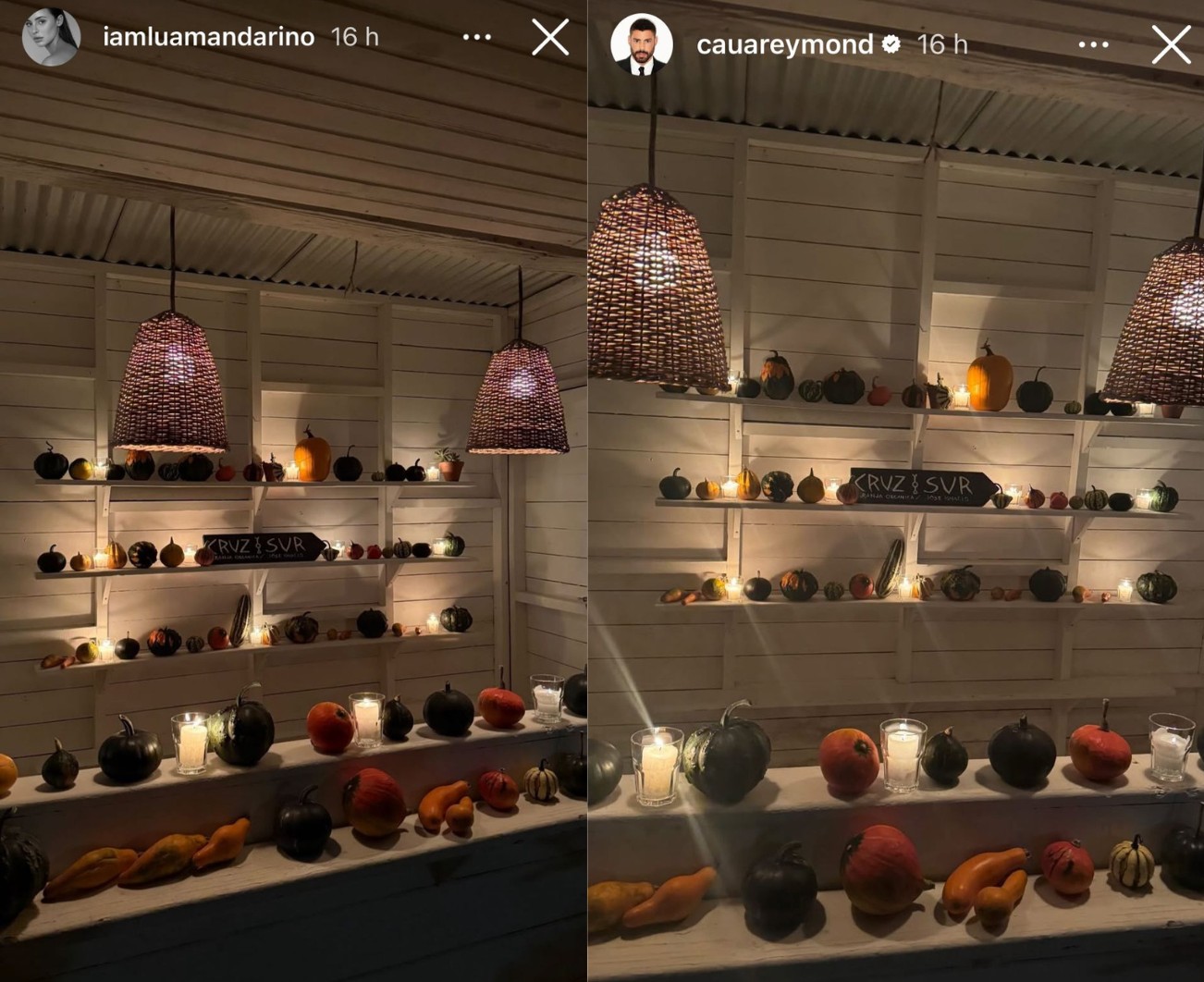 Cauã e Luana foram a um restaurante e postaram fotos dos pratos (ao fundo da foto dela dá para ver o prato dele), do local e da decoração (idênticas). Eles estão hospedados no hotel Ayana, cujas diárias podem chegar a R$ 20 mil, sendo exigido contratar no mínimo duas.