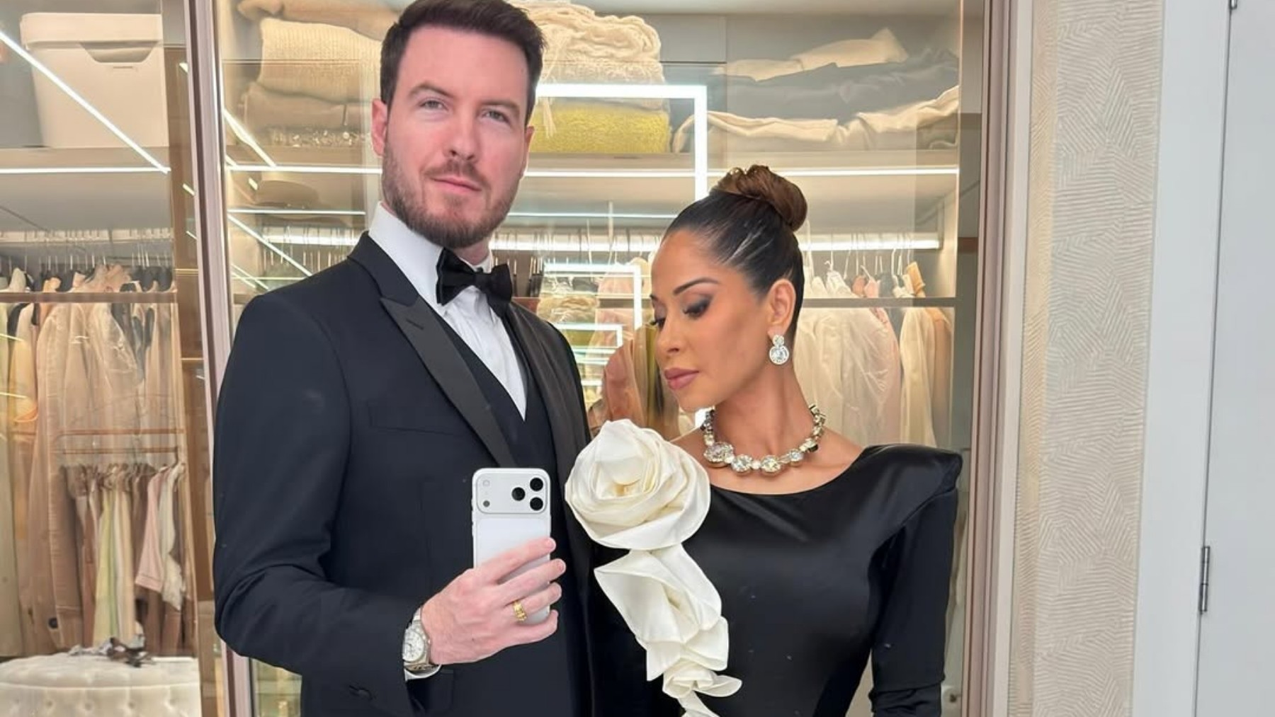 Entre os looks que mais chamaram atenção, MaÃra Cardi surgiu com um vestido de gala preto e branco, assinado por Mayara Sansana, que rapidamente ganhou destaque nas redes. A peça traz uma leitura contemporânea do clássico P&B, com modelagem ajustada ao corpo e um detalhe escultural em tecido branco que percorre o vestido em volume orgânico, criando um efeito dramático e sofisticado ao mesmo tempo.