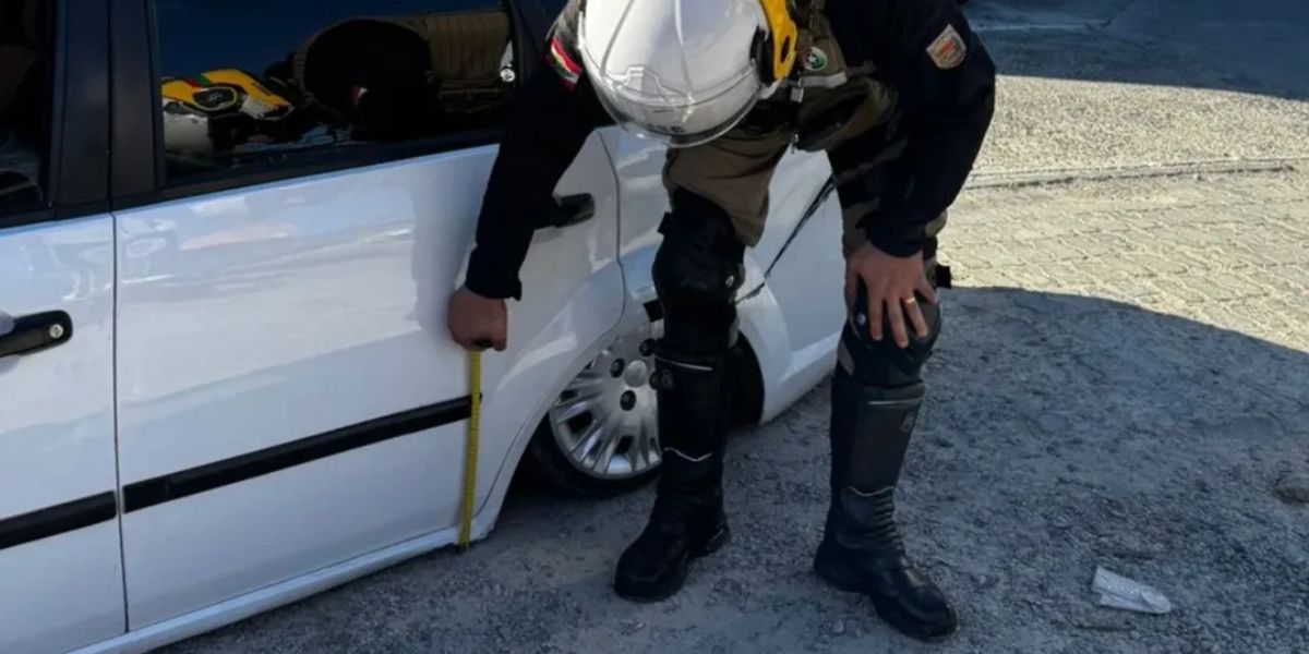 Medido ‘na régua’, carro colado no asfalto vira caso de polícia em Florianópolis