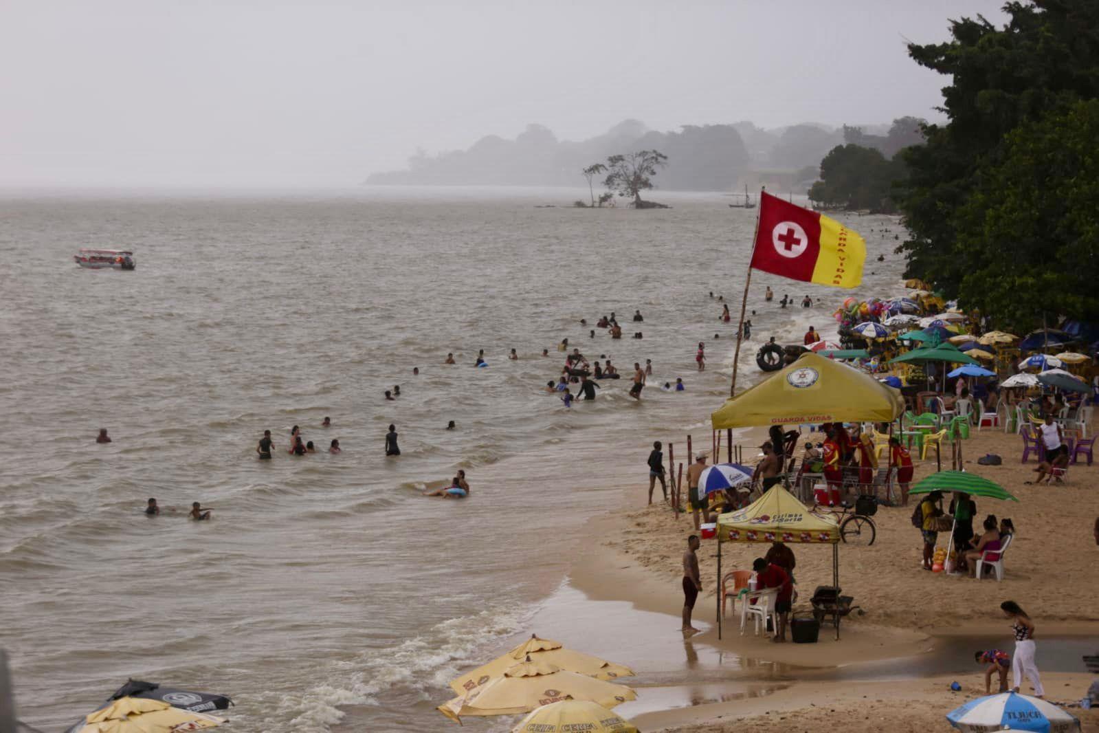 O cenário encontrado pelos visitantes foi tÃpico do Inverno Amazônico: céu predominantemente nublado, vento forte, maré alta e pancadas de chuva ao longo do dia. Na Praia Grande, uma das praias mais movimentadas da região, o fluxo foi moderado durante a manhã e o inÃcio da tarde, com banhistas aproveitando o momento de descanso.