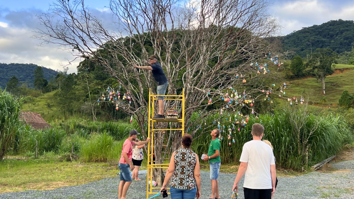 O post Moradores transformam árvore em atração de Páscoa com 3,4 mil ovos em vila histórica de SC apareceu primeiro em ND Mais