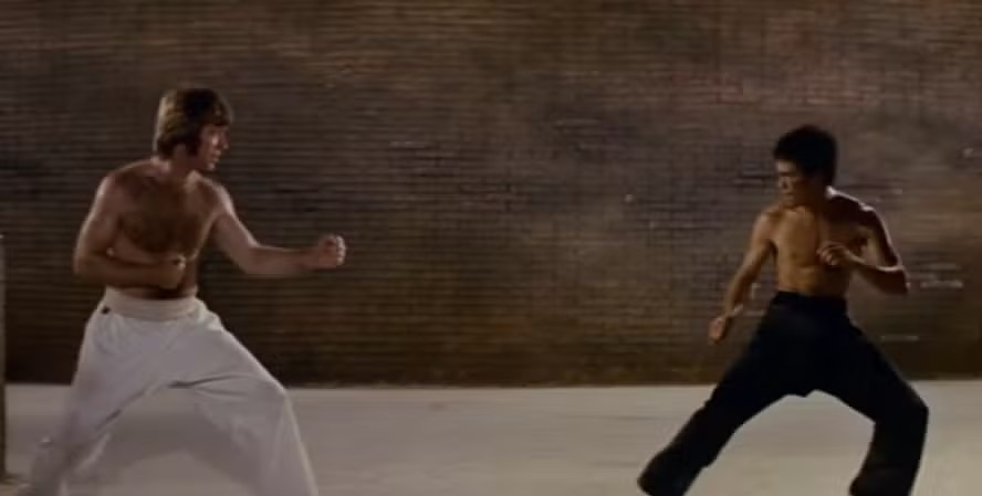 Gravada no Coliseu de Roma, a cena final do filme colocou frente a frente dois dos maiores nomes das artes marciais no cinema. No enredo, Norris interpreta o antagonista Colt, derrotado por Lee em um combate que atravessou gerações e se consolidou como uma das sequências mais marcantes do gênero.