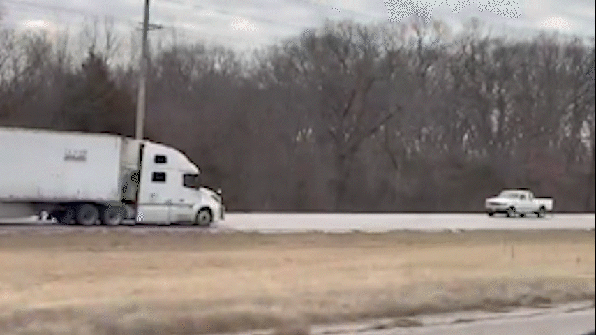 O motorista de uma carreta de 80 toneladas foi flagrado em alta velocidade na contramão de rodovia no Missouri (EUA) na manhã de quarta-feira (25/2).