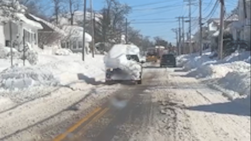 A flagrante violação das leis de trânsito foi registrada na terça-feira (24/2), de acordo com a emissora WPRI. O motorista, apenas com a visão do seu lado do para-brisas, foi visto atravessando uma via coberta de gelo e lama poucas horas após o fim da proibição de circulação de veículos no estado.