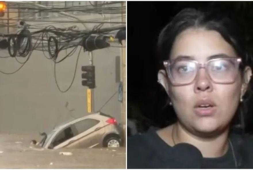 Em entrevista à TV Globo, Larissa contou que estava saindo da empresa em que trabalha quando a água começou a subir. Ela tentou jogar o carro em direção ao posto de gasolina das mediações, mas o veículo já começou a boiar.
