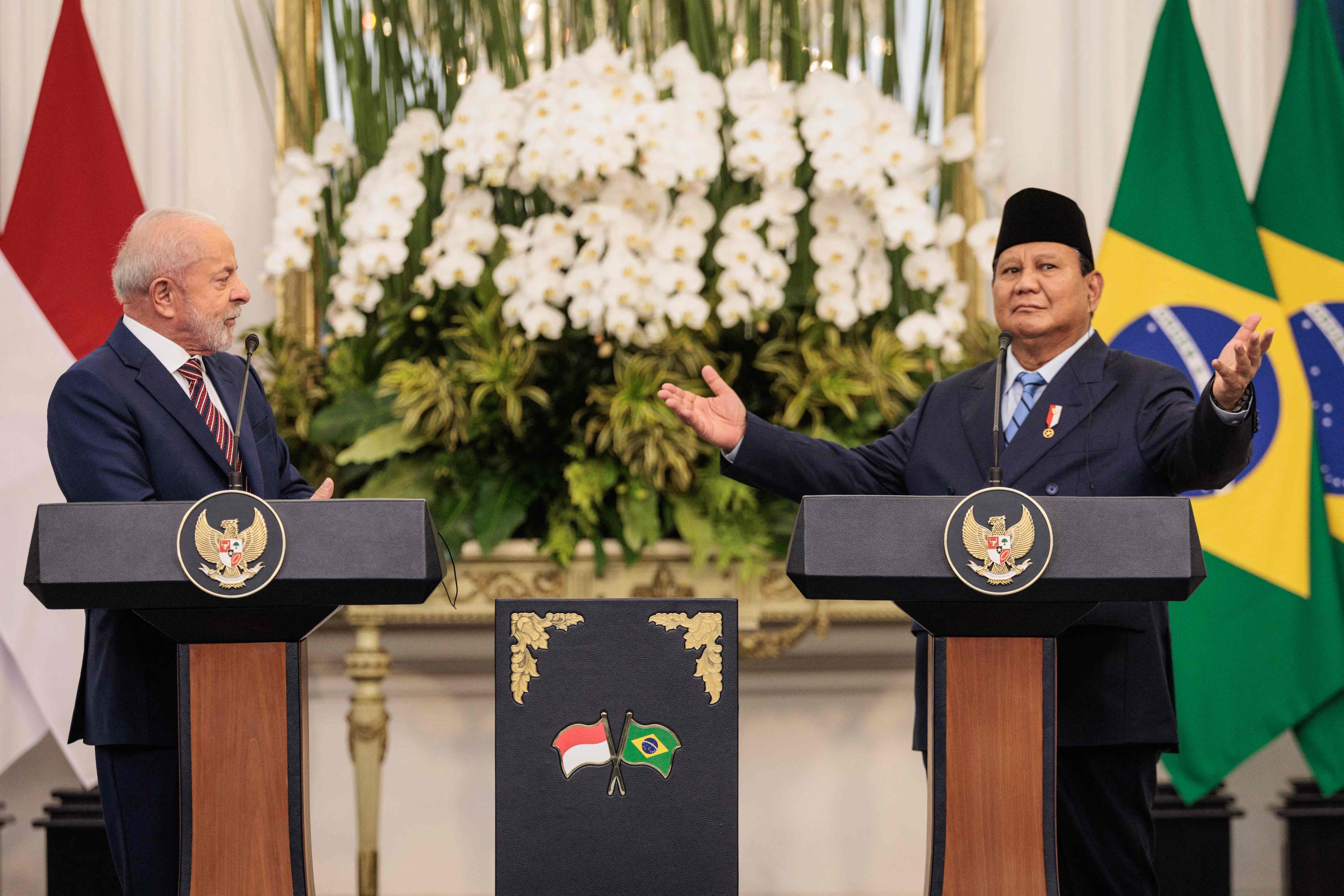 — Nós queremos multilateralismo e não unilateralismo. Nós queremos democracia comercial e não protecionismo — afirmou Lula. — Indonésia e Brasil não querem uma segunda Guerra Fria. Nós queremos comércio livre. E, mais ainda: tanto a Indonésia quanto o Brasil têm interesse em discutir a possibilidade de comercialização entre nós dois ser com as nossas moedas. Essa é uma coisa que nós precisamos mudar.