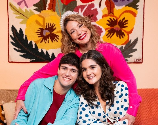 Helga Nemetik posa com Pedro David e Maitê Padilha, que interpretam seus filhos no longa “A Miss”. Dirigido por Daniel Porto, o filme estreia no dia 26 de fevereiro nos cinemas. Na trama, Helga vive uma ex-vencedora de concurso de beleza que alimenta o sonho de ver a filha seguir seus passos.