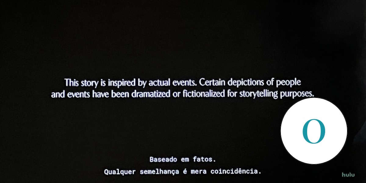 Para a tradução sem pé nem cabeça no início dos episódios de “Love story”, no Disney+: “Baseada em fatos. Qualquer semelhança é mera coincidência”. O que aparece em inglês na tela é: “Inspirada em fatos. Certos eventos foram ficcionalizados para fins narrativos”.