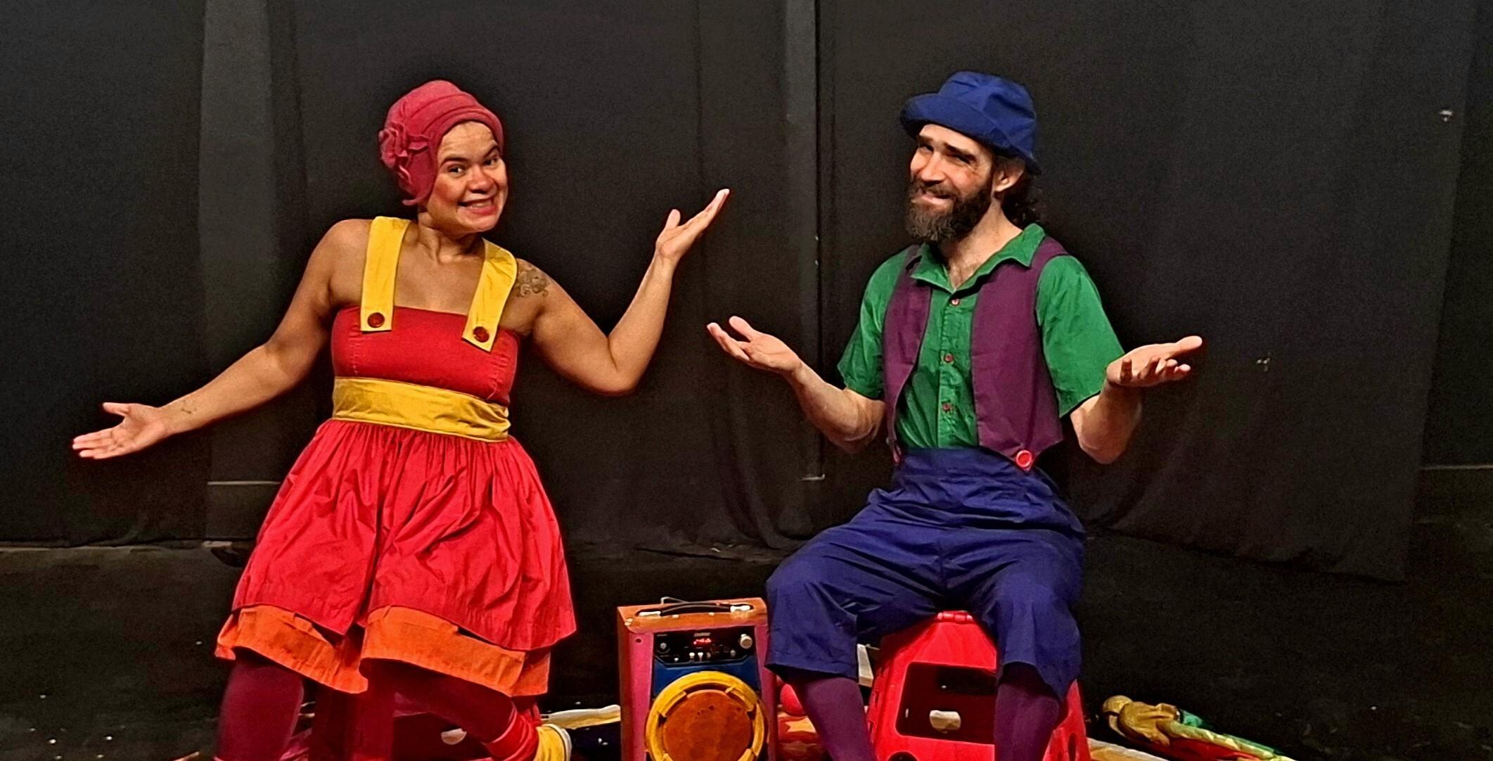 Em cena, a Palhaça Estrelita e o Malabarista Tutu conduzem uma apresentação multilinguagem que combina palhaçaria, malabarismo e narração. Romana Melo interpreta a Palhaça Estrelita e também é responsável pela contação. Artur Dória atua como malabarista e cuida dos efeitos sonoros.