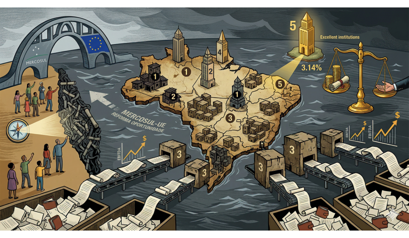 Imagem gerada por IAIlhas de excelência num oceano de mediocridade - e a porta que o acordo Mercosul-UE abre