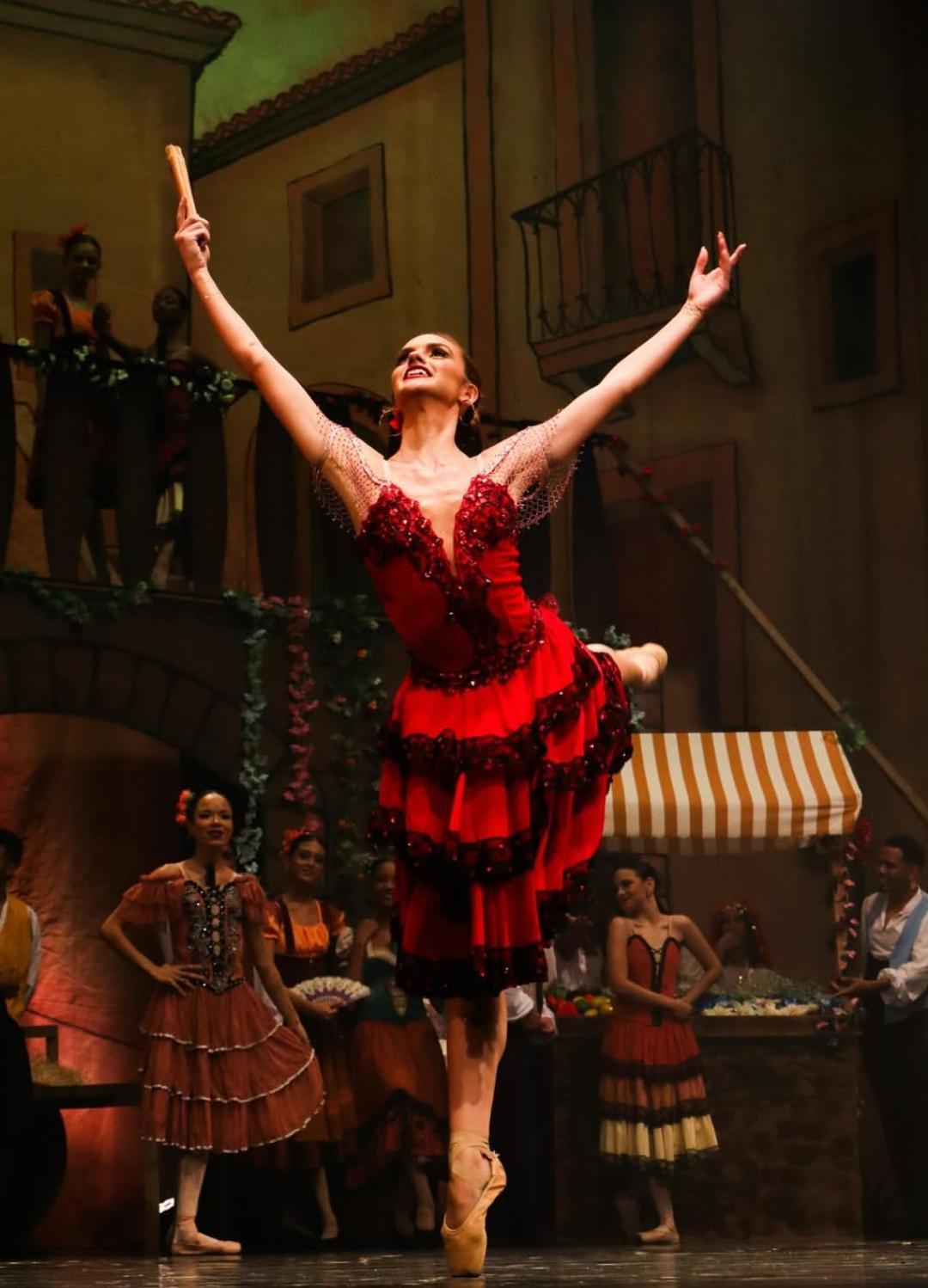 A personagem Medora é o destaque central, representada como a flor mais radiante do jardim, cercada por corifeias e ninfas. O espetáculo aposta na leveza, precisão e estética da dança clássica para construir um universo idealizado, onde música, movimento e poesia se entrelaçam.