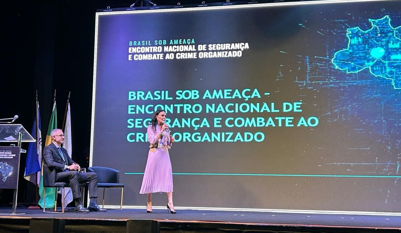 Casimiro Reis e Ivana David em painel no evento “Brasil Sob Ameaça – Encontro Nacional de Segurança e Combate ao Crime Organizado”. Foto: Aline Gomes/Folha VitóriaEspecialistas afirmam que o combate ao crime organizado depende da retirada dos recursos financeiros e do enfrentamento à lavagem de dinheiro
