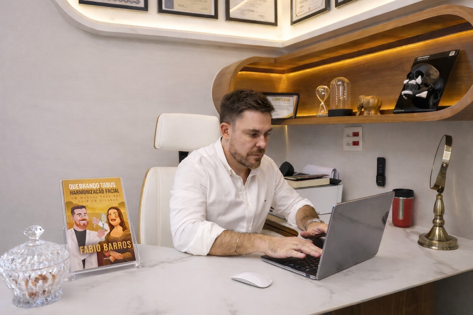 No livro, o especialista ressalta que a harmonização facial não se resume ao preenchimento com ácido hialurônico. Ele explica que a especialidade envolve compreensão aprofundada de anatomia facial, ossos, músculos e proporções. "Harmonização não é sobre aumentar volume, é sobre entender estrutura e equilíbrio", pontua.