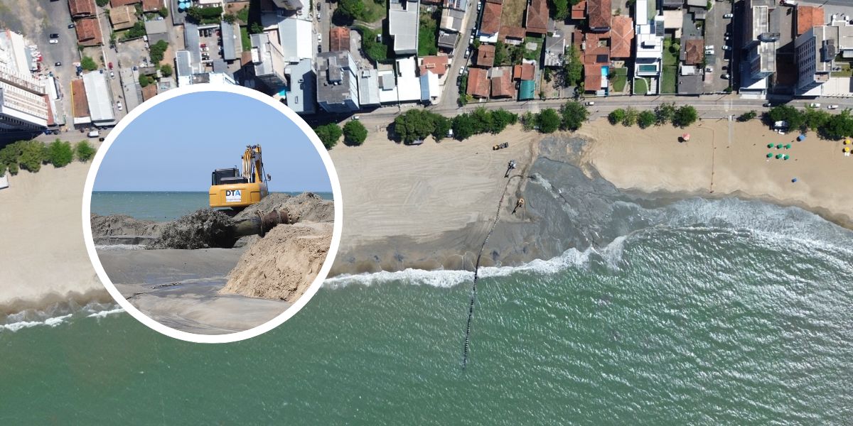Obra milionária avança e alargamento de praia em SC chega a 30%