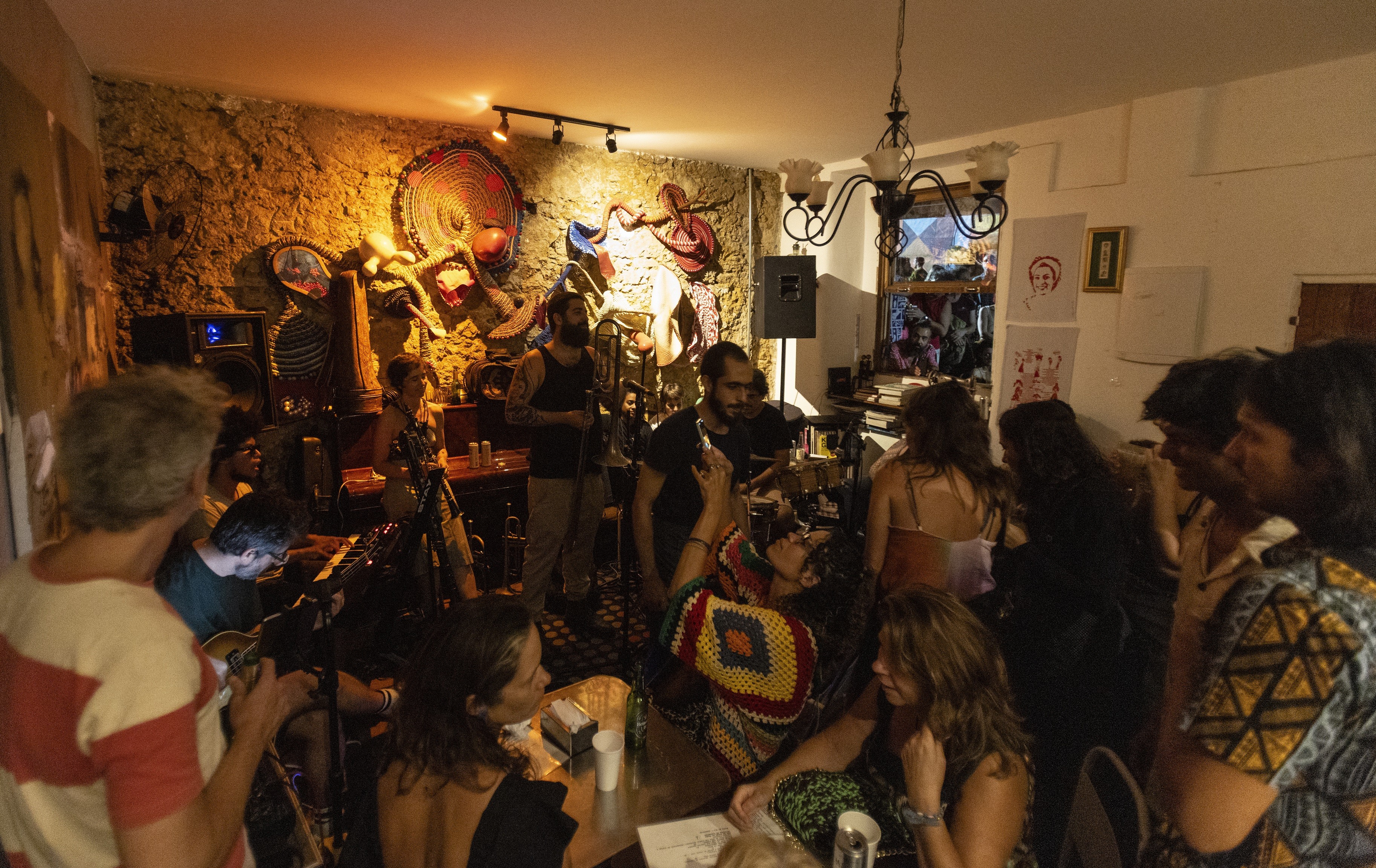 Público em frente ao Indecente Café, em Santa Teresa