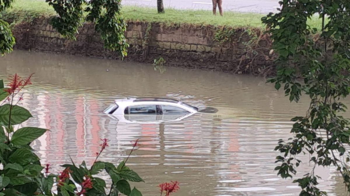 Pane mecânica faz carro sair da pista e cair no rio Cachoeira em Joinville