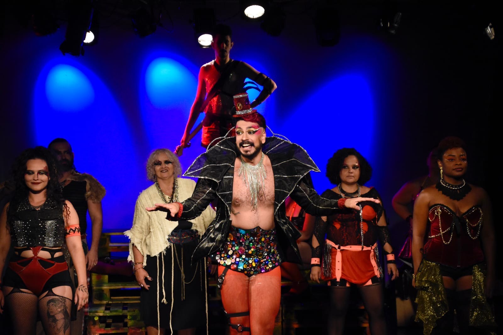Criado a partir da Oficina de Montagem Teatral da escola, “Maldita” reúne 21 artistas periféricos em cena e mobilizou um processo formativo ampliado, envolvendo mais de 50 alunos e artistas nas áreas de cenário, figurino, caracterização, iluminação e direção musical.