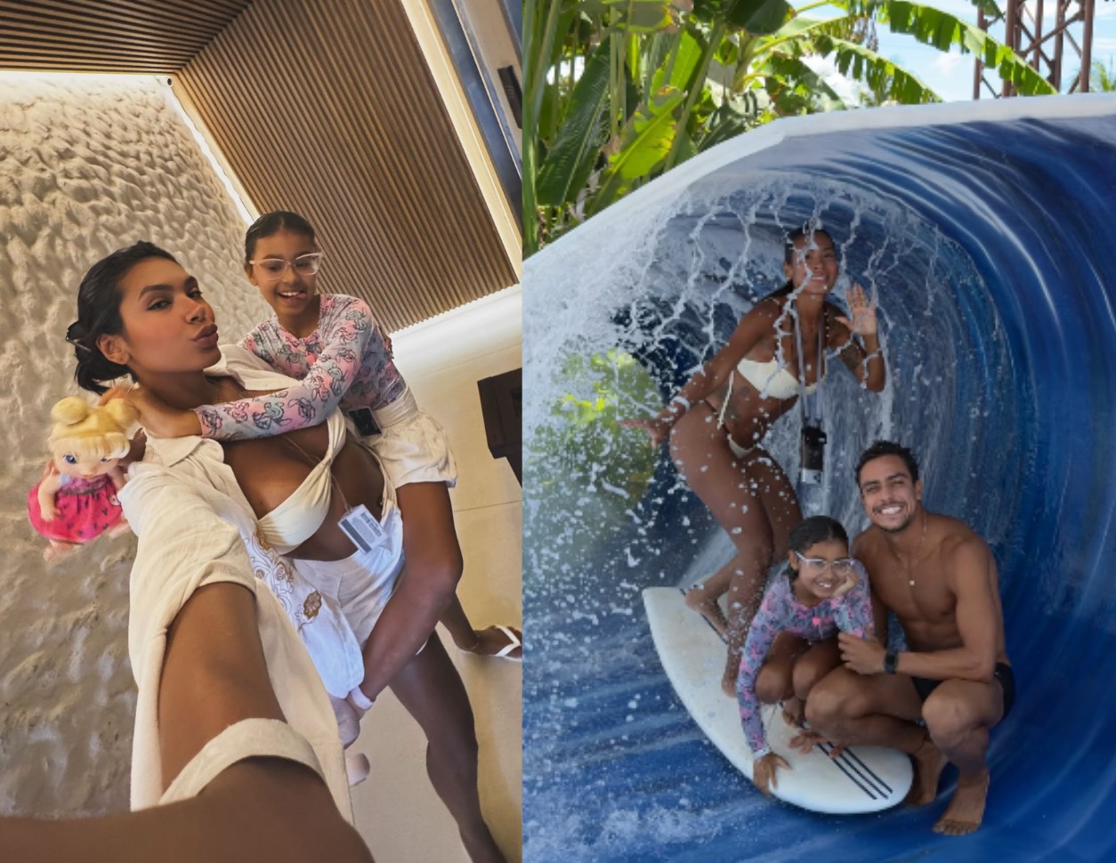 Viagem em família! Pocah, o namorado e a filha estão curtindo dias de descanso em um parque aquático em Fortaleza, no Ceará. A cantora mostrou o embarque ao lado de Vitória, de 10 anos, e do empresário e ex-jogador Arthur Pelagio nesta terça-feira, 28.
