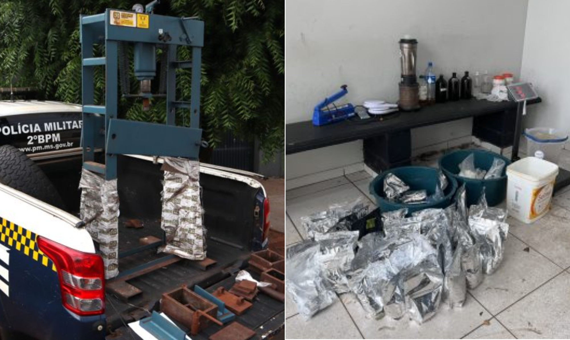 Além do entorpecente, a casa armazenava diversos produtos químicos utilizados para aumentar o volume da droga, como soda cáustica, ácido sulfúrico e éter. A estrutura contava ainda com balanças de precisão, embalagens a vácuo e uma prensa hidráulica com capacidade para 30 toneladas, usada para compactar a mistura. Todo o material foi apreendido e encaminhado à delegacia.