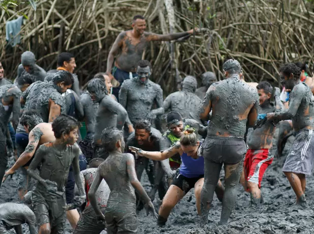 “Colocamos dois camburões, cheios de tijuco, que é o nosso abadá acima do mangue — nós tiramos esse tijuco de uma parte do mangue bem limpa. E também há um abadá VIP, que é um barro mais concentrado, sem areia. E esse barro que está no camburão pinta bastante brincante. Também temos uma parceria com o ICMBio, para que nós possamos ter o controle das pessoas entrando no mangue, para que não levem garrafas PET, latinha. Vamos estar orientando as pessoas para que nós possamos fazer um carnaval ecologicamente correto”, detalha Cafá sobre o bloco.