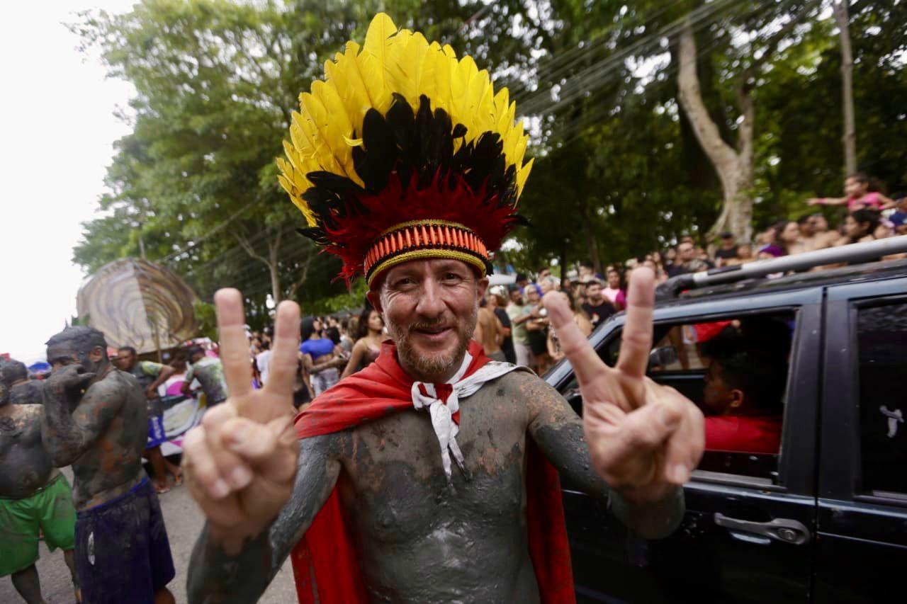 O presidente do bloco Pretinhos do Mangue, Edmilson dos Santos, o Cafá, acompanhou o desfile da 37ª edição da agremiação neste domingo (15), em Curuçá. Com 26 anos de história no grupo, ele ressaltou que, este ano, além da tradicional bandeira da preservação ambiental, o bloco utiliza o Carnaval para denunciar o feminicídio e a violência contra os animais, promovendo a conscientização social nas ruas da cidade.