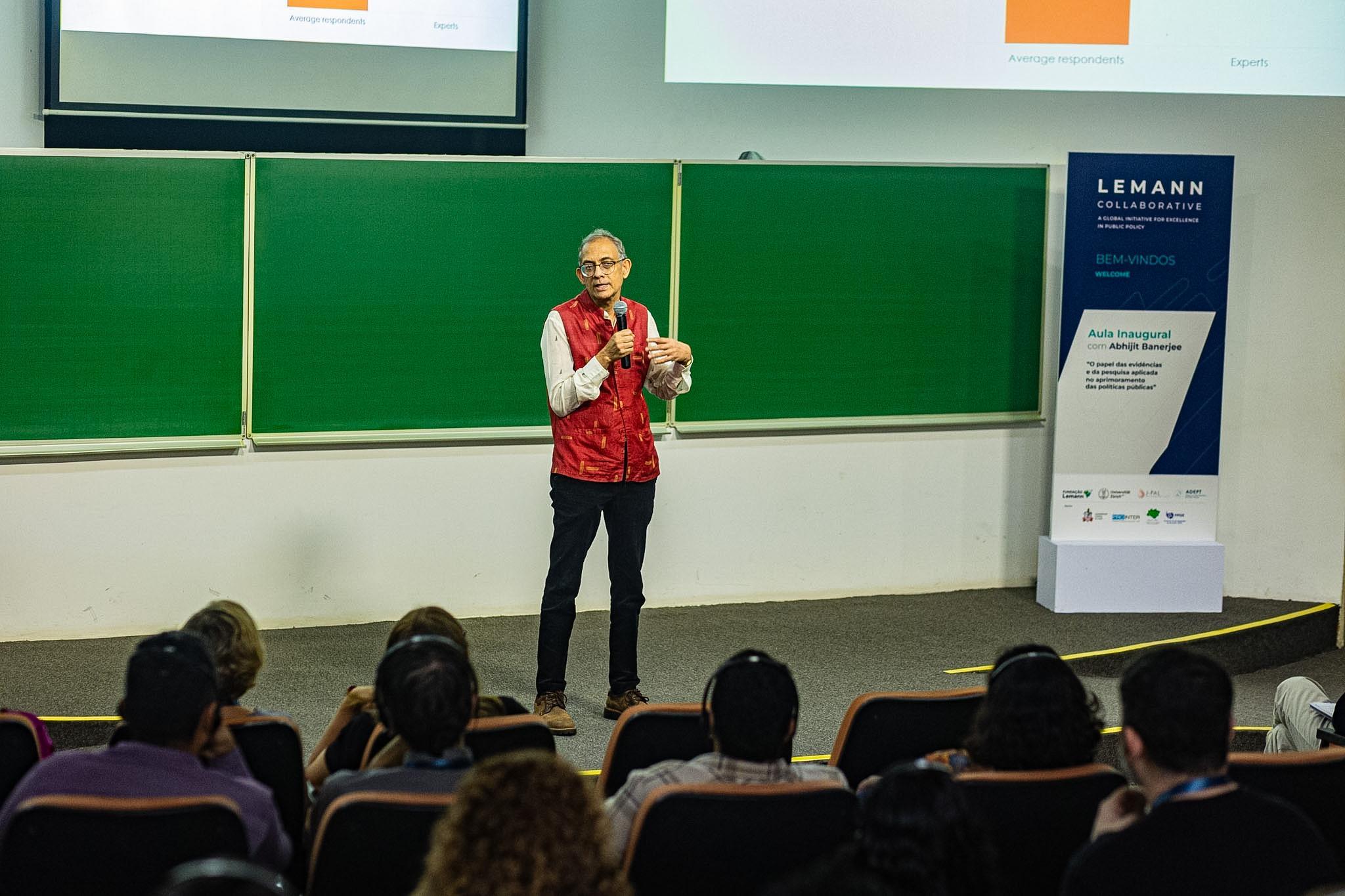 No evento que reuniu mais de 200 pessoas, Banerjee tambĂ©m chamou atenção para os desafios polĂticos na implementação de polĂticas pĂșblicas eficazes. De acordo com ele, mudanças nem sempre acontecem apenas com base em resultados tĂ©cnicos. âA polĂtica mudar Ă© difĂcil, porque envolve interesses. NĂŁo Ă© apenas uma questĂŁo de provar que uma polĂtica Ă© melhor do que outraâ, destacou.